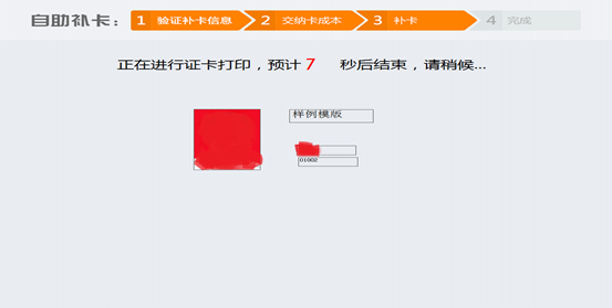 6.完成:证卡打印结束后,进入此步;提示客户是否打印凭条;吐卡并提示用户及时取走卡片。