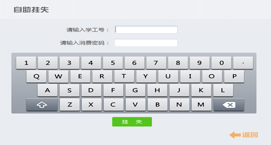2.挂失:用户点击挂失后,验证用户输入的信息,不匹配则提示错误;账户信息和密码正确,则开始挂失业务;若挂失正常,则提示挂失成功,其他则提示挂失结果。