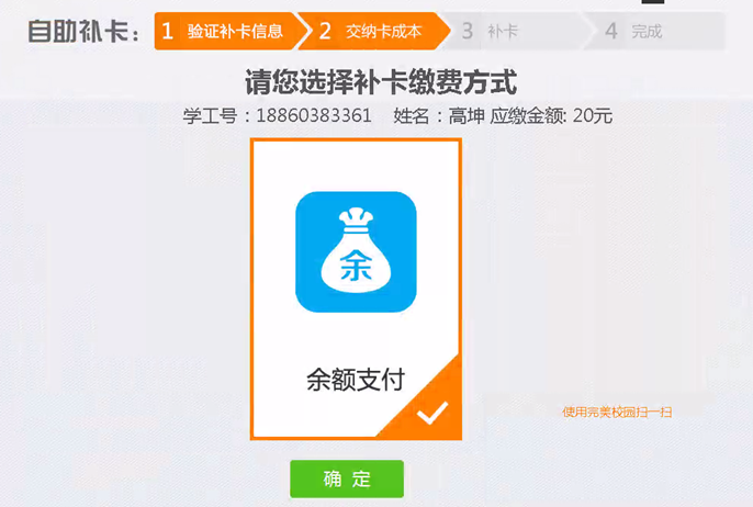 5. 交纳卡成本:校园卡账户余额缴纳补卡费10元,如果校园卡余额不足10元,请首先用农业银行充值,保证账户余额大于或等于10元,防止补卡失败。