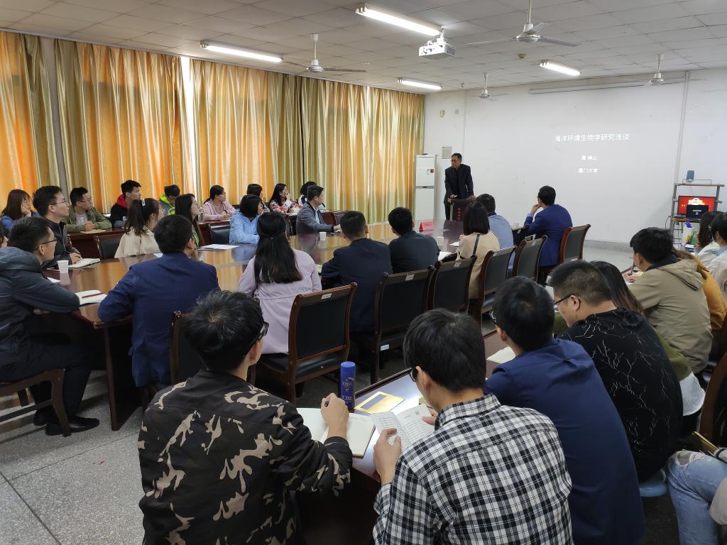 10月14日,厦门大学近海海洋环境科学国家重点实验室首席科学家高坤山教授应邀到我校进行学术交流,并作了题为《海洋环境生物学研究浅谈》的学术报告。报告会由海洋生命与水产学院副院长董志国主持,海洋生命与水产学院60余名师生参加了报告会。