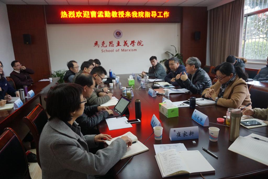为推进马克思主义学院的科研工作,提升马克思主义学院教师的科研水平,11月21至22日,马克思主义学院邀请南京师范大学哲学系主任、博士生导师曹孟勤教授,东南大学人文学院伦理学研究所所长、《东南大学学报》(哲学社会科学版)主编徐嘉教授来校指导科研工作。