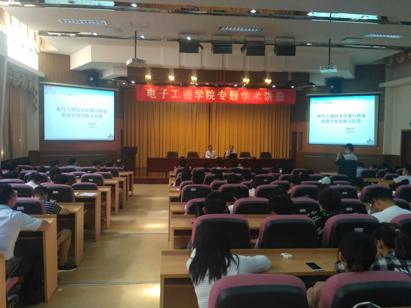 6月1日,连云港港口集团供电工程公司副总经理、电力工程高级工程师张跃军应邀来我校作题为《电气工程技术在港口的发展与应用》的学术报告。报告会在文博楼报告厅举行,电气系教师、大三本科生聆听了报告,电子工程学院院长王经卓主持报告会。