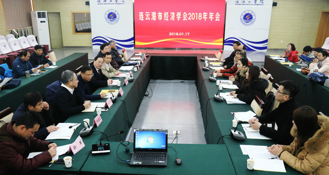 1月17日,挂靠在商学院的连云港市经济学会2018年年会暨学术交流会在我校会议中心东海厅召开。副校长许兴友应邀出席会议,来自市委市政府相关部门专家领导、知名企业家、在连部分高校教师60余人参加了会议,学会常务副会长、商学院院长宣昌勇主持年会。