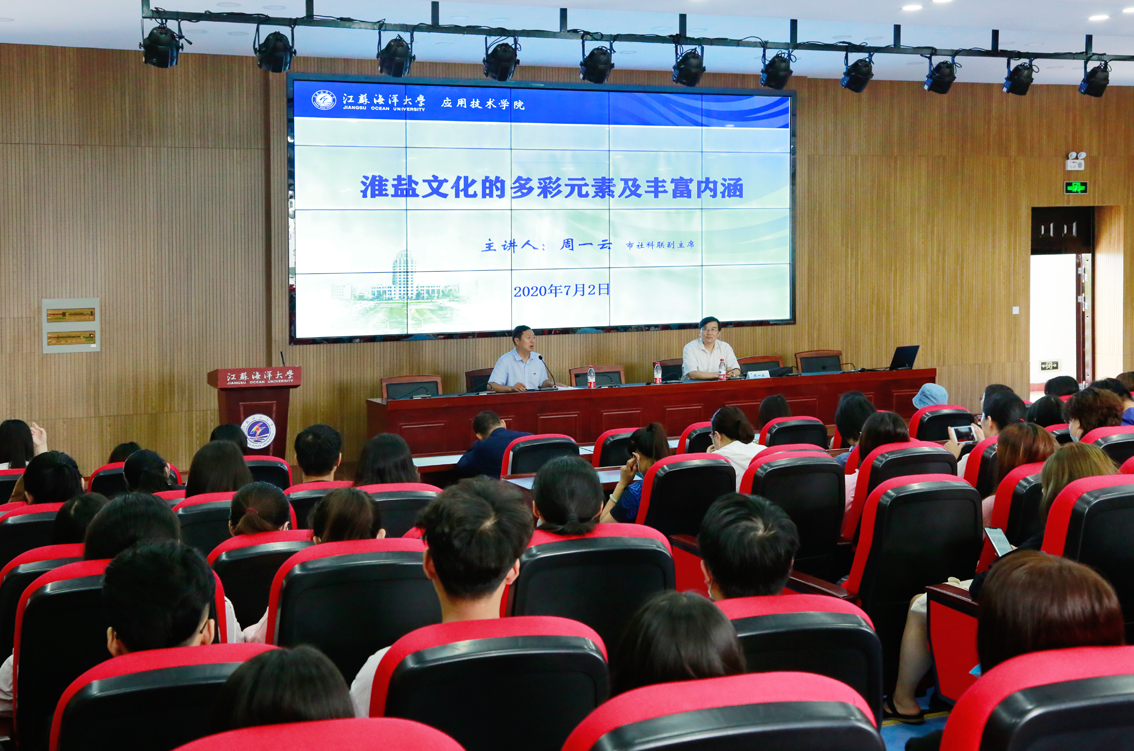 为进一步贯彻落实习近平总书记关于大运河文化带建设的重要指示精神,以文化自信为学校内涵建设高质发展与学院应用技术技能人才培养改革推进注入精神动力,7月2日上午,应用技术学院在敦行楼201报告厅举办“淮盐文化的多彩元素及丰富内涵”专题讲座,市社科联副主席周一云应邀激情开讲。学院160余名师生现场聆听本次讲座。