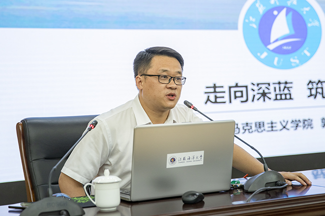 7月3日下午,江苏科技大学马克思主义学院党总支书记郭昭昭在会议中心黄海厅以“走向深蓝,逐梦海洋”为题为我校教师作课程思政辅导报告。校领导王自力、史顺良以及有关职能部门负责人、课程思政示范课程负责人、马克思主义学院、商学院、文法学院、海洋生命与水产学院教师参加了报告会,报告会由马克思主义学院党总支书记张学武主持。