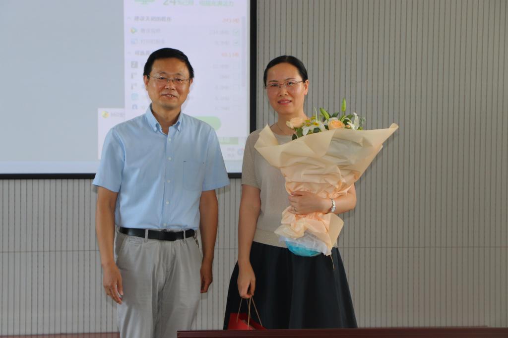 最后,曹伟平为即将退休的陈秋明老师送上了欢送词,并赠送了精美的鲜花。