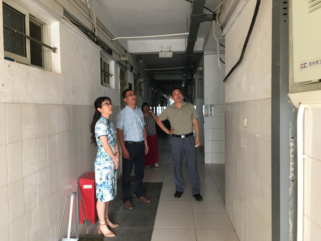 金芙蓉详细听取了各宿舍区安全隐患风险点防控、暑期宿舍维修施工、宿舍卫生清扫及暑期工作安排等相关情况的汇报,所到之处认真了解各宿舍区安全风险点的解决进度,实地查看了D区宿舍阳台护栏、B区公共区域电缆、地砖,A区配电房、消防器材等设施。同时深入学生宿舍,查看房间状况,仔细了解个别渗水宿舍房间情况,叮嘱物业毕业生房间的卫生保洁务必彻底到位。同时走访了大学生空调服务中心,了解情况,现场办公,解决空调服务中心相关问题。