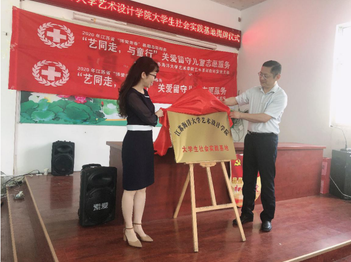 7月16日上午,副校长金芙蓉在校团委、艺术设计学院等部门负责人的陪同下,来到赣榆区墩尚镇岭灶村看望慰问“‘艺同走,与童行’关爱留守儿童”暑期社会实践师生,并出席艺术设计学院社会实践基地揭牌仪式。