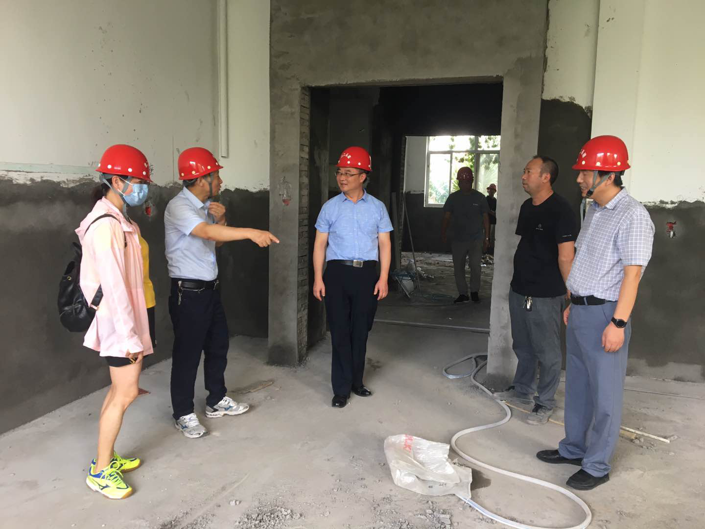 近期“秋老虎”持续发威,港城热浪滚滚。8月18日下午,副校长严云洋冒着酷暑到通灌校区致知楼改造工程施工现场看望慰问基建员工和一线工人,了解工程进展、质量等情况,并送上水果、瓶装水等防暑降温慰问品,同时送上了学校领导对基建处和工地施工人员的关怀和慰问。在施工现场,严云洋感谢大家对学校基建工作的辛苦付出,并要求工地负责人始终坚持安全施工,既要保证施工质量,更要保障施工人员的生命财产安全,一定要落实防暑降温措施。他指出,近段时间气温较高,在确保施工质量和进度的同时,安全防范意识切不可掉以轻心,要把安全生产放在首位。高温天气施工,一定要坚持安全第一,合理安排施工时间。