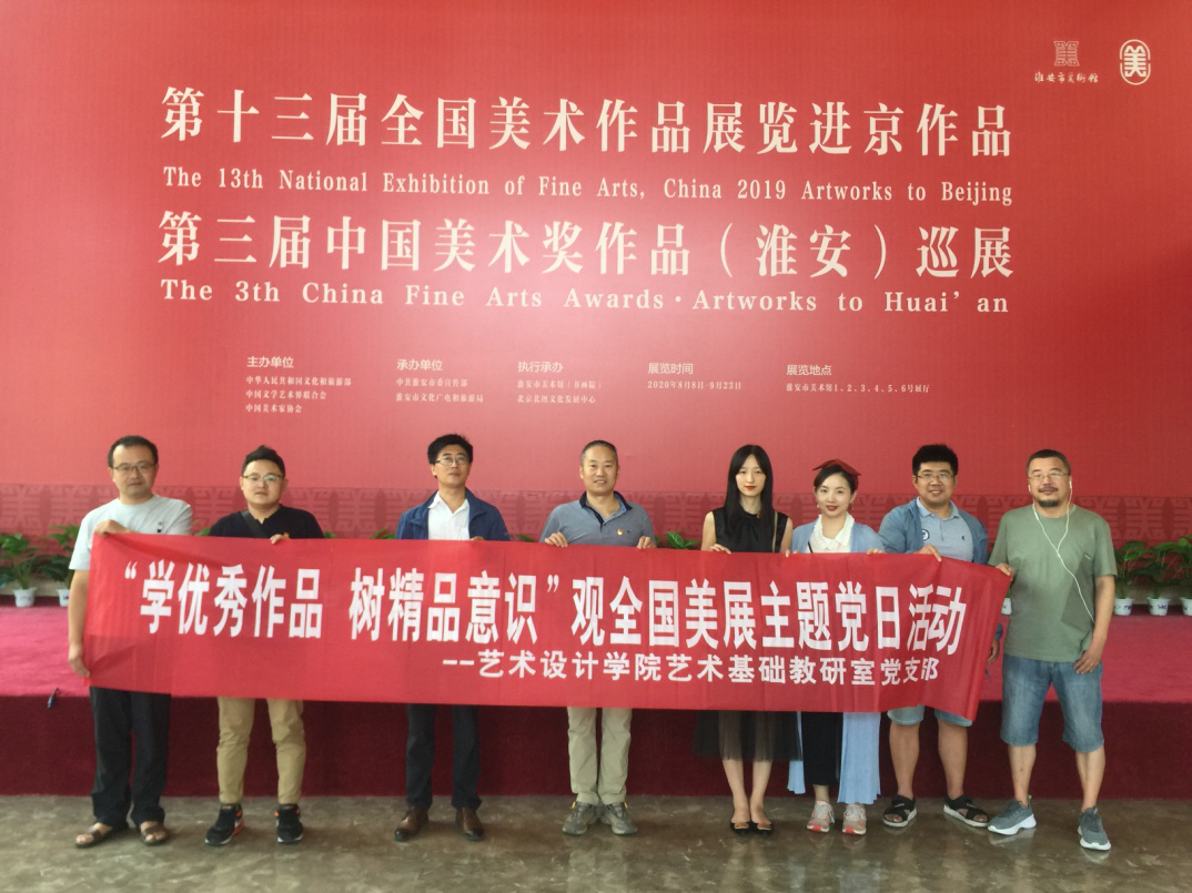 8月12日,艺术设计学院艺术基础教研室党支部全体党员及非党员教师赴淮安美术馆,开展“学优秀作品,树精品意识”主题党日活动。观看由文化和旅游部、中国文联、中国美协主办的“第十三届全国美展进京作品展”、“第三届中国美术奖作品(淮安)巡展”作品。