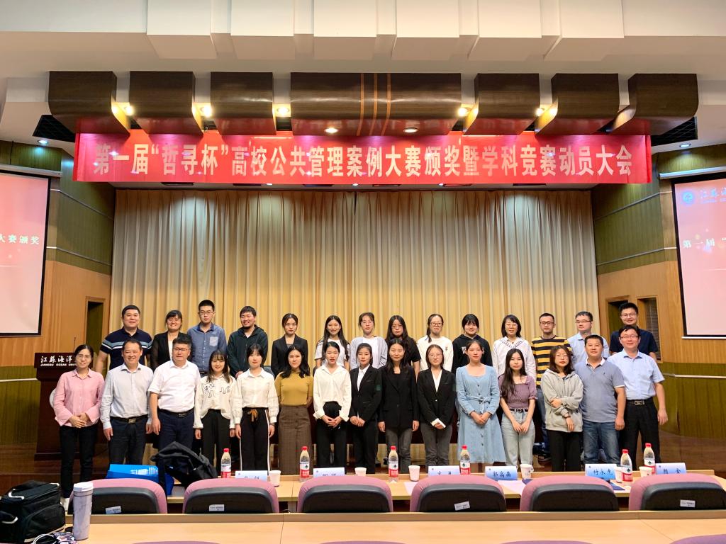 为了提高公共管理相关专业学生学习的积极性,提升相关专业学生团队精神以及动手能力,积极营造文法学院积极参加专业学科竞赛氛围,9月24晚,文法学院在文博楼报告厅举办第一届“哲寻杯”高校公共管理案例大赛颁奖暨学科动员大会。文法学院院长吴明忠、院党委副书记王国银、副院长李敏及公共管理相关专业老师、第一届“哲寻杯”高校公共管理案例大赛获奖队员和公共管理系19级全体学生参加。大会由公共管理系主任杨殿闯主持。