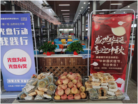 秋风送爽,丹桂飘香,在中秋佳节到来之际,饮食服务总公司开展了“中秋情暖海大、佳节爱在食堂”活动。从9月29日开始,苍梧校区各食堂陆续为前来用餐的师生免费送月饼,致以节日的祝福。10月1日中秋、国庆双节当天,各食堂更是掀起了送月饼活动的小高潮,大厅的桌子上摆满了各种口味的月饼和金色的桔子、红色的苹果,海大学子们被这些贴心的行为暖到了。苍梧校区美食广场还把送月饼活动和光盘行动结合起来,让同学们感受到温情的同时,也增强了勤俭节约意识。