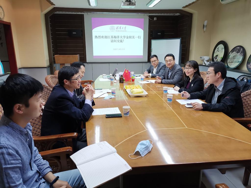 清华大学党委副书记过勇热情接待了金芙蓉一行,他详细介绍了清华大学辅导员队伍建设、学生工作管理、学生思想政治引导和学生科技创新工作的具体举措和特色做法。金芙蓉介绍了江苏海洋大学的办学历程和发展概况,重点介绍了我校团学工作情况,表示希望学习借鉴清华大学的工作经验和具体做法,推动我校团学工作发展。
