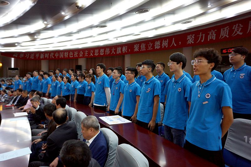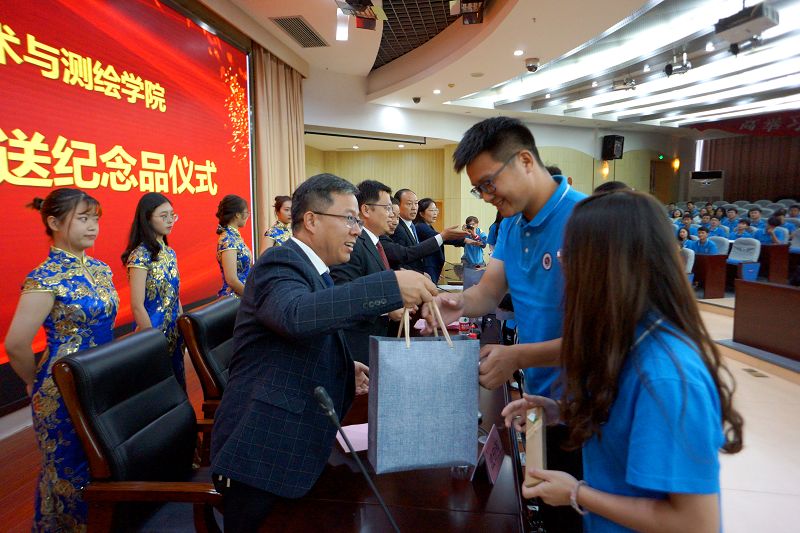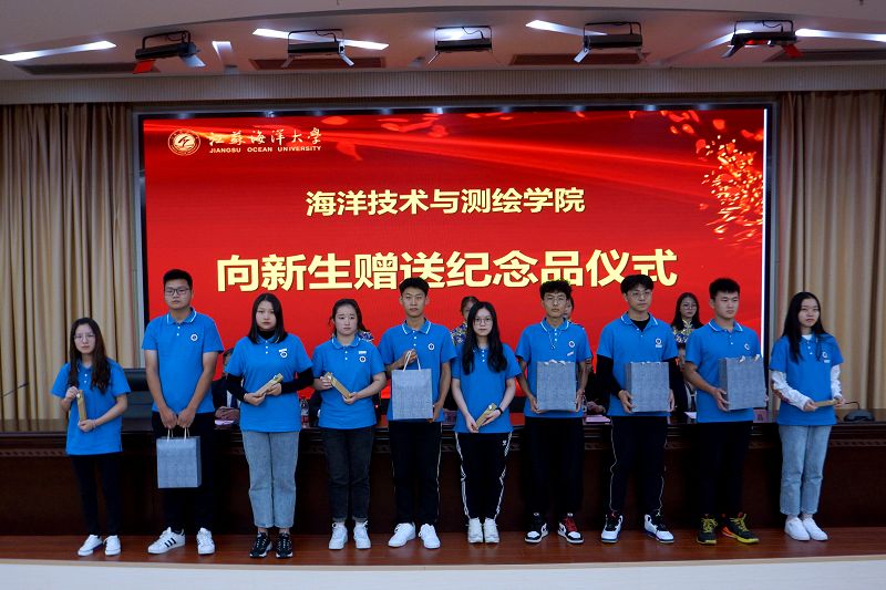 会上,学院党政领导为5位新生班主任颁发了聘任证书,并向每一位新生赠送了一把专属铜尺作为入学纪念。尺子上面刻上了学校的校徽、院名和每个新生的名字,希望全体新生画人生为尺,测经天纬地图;画青春为尺,绘海洋强国梦。