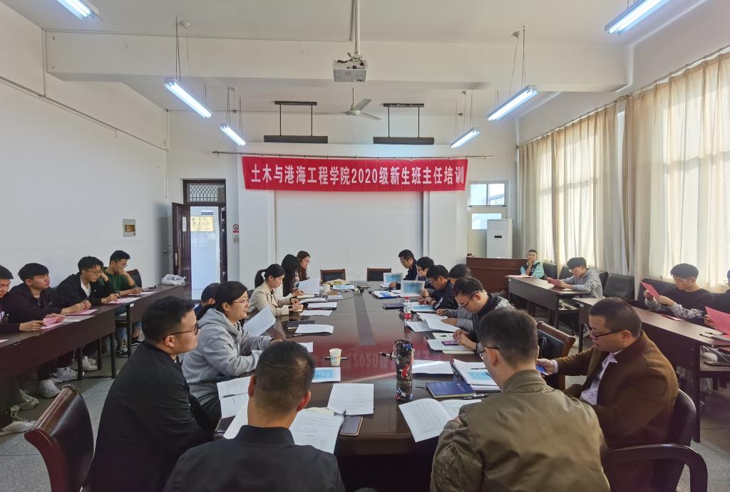 10月7日下午,召开2020级新生班主任及新生支部导生培训会。学院党委副书记钱汉珍对编印的《土木与港海工程学院2020级新生班主任手册》进行了详细解读。辅导员分别从自身工作出发,对新生班主任及新生支部导生进行了系统培训。老生班主任代表刘凤玲分享了担任班主任的经验和心得。党委书记尤洪建要求,全体新生班主任、辅导员和支部导生要投入更多的时间和精力,采取有效工作方法,确保迎新工作的顺利开展及新生班集体的良好建设。