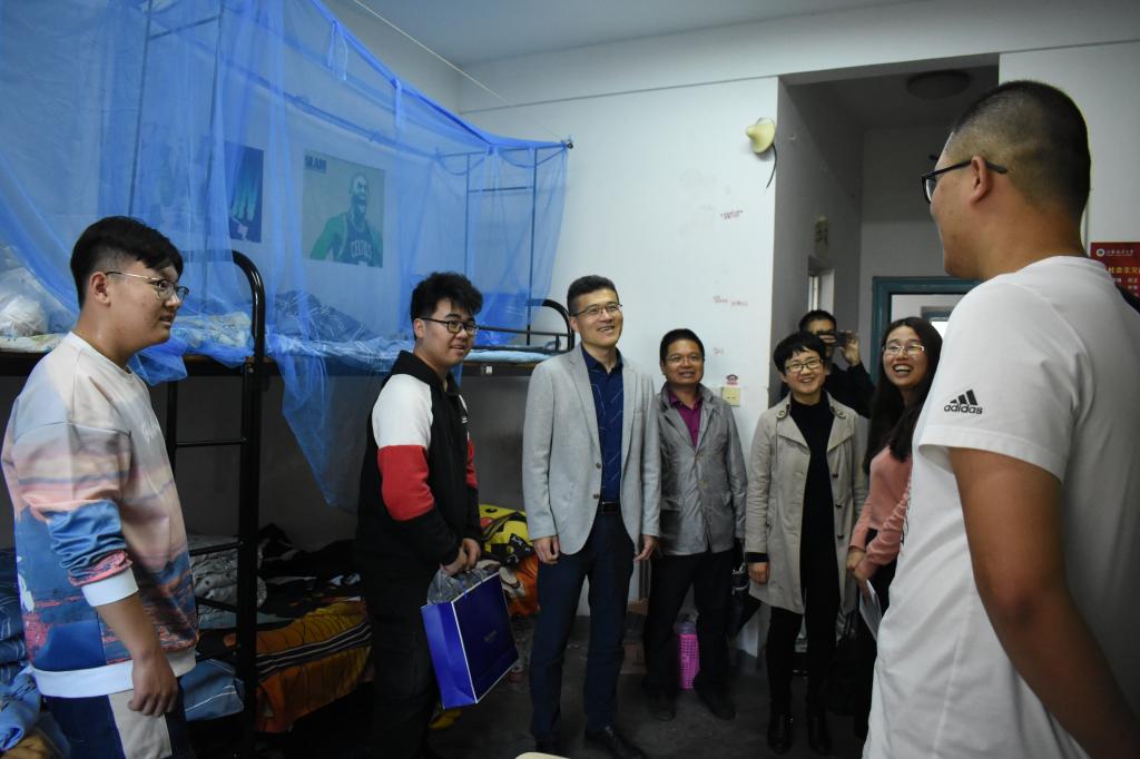 10月8日下午,学院党委书记尤洪健、副院长宗钟凌、院党委副书记钱汉珍等,带领各班新生班主任、辅导员走访新生宿舍,同时,为家庭经济困难学生送去了学院的祝福及临时困难补助,希望能帮助家庭经济困难学生减轻经济压力,全身心投入到学习生活中来。各位领导如至亲般的关怀不仅使新同学感受到了土木学院如家般的温暖,更给予了新生开启新生活、迎接新挑战的信心与勇气。