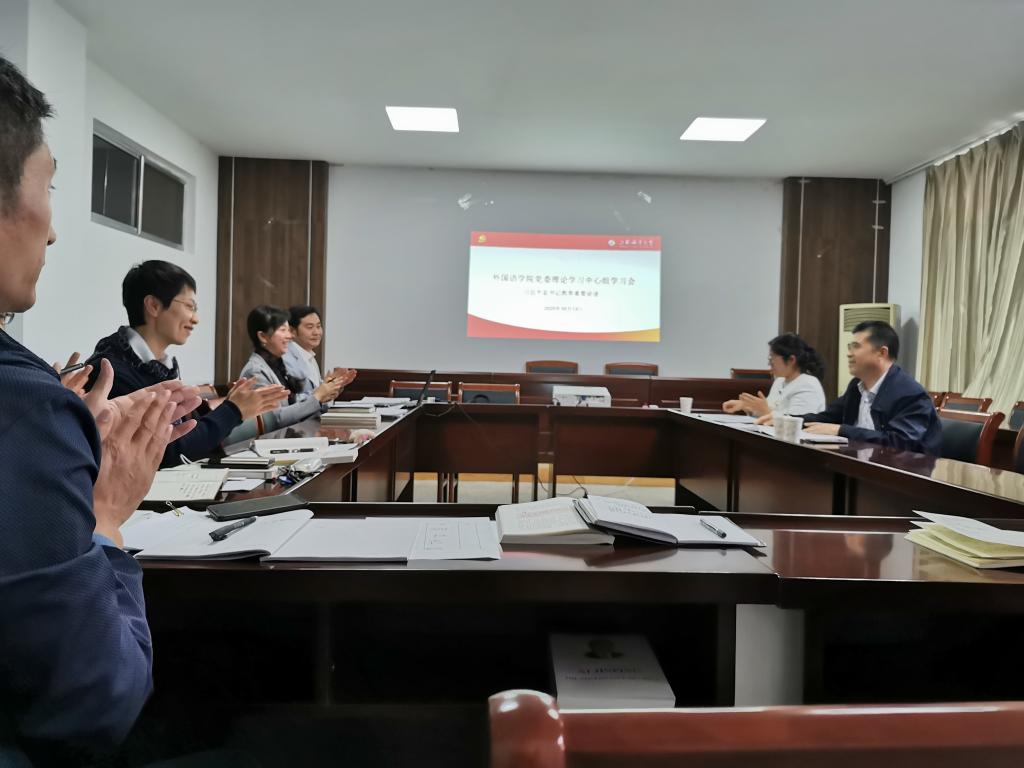 10月13日下午,外国语学院党委理论学习中心组围绕“习近平总书记关于教育的重要论述”主题开展了专题学习,校党委常委组织部部长纪延光、校纪委审查调查处处长缪克平、宣传部卢娟老师全程旁听。外国语学院党政领导班子、各党支部书记参加了会议。会议由学院党委书记徐岚主持。