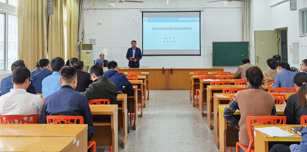 为提高研究生培养质量、加强导师队伍建设,2020年10月14日下午,海洋科学与水产学院2020年研究生导师培训会在海洋北楼308会议室召开。学院党委书记王波,院长徐军田,副院长高焕以及海洋科学和渔业发展方向的近40位导师参加了本次培训会。会议由徐军田主持。
