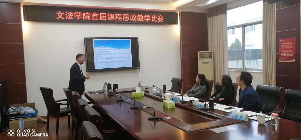 为落实立德树人根本任务,推动以课程思政为目标的课堂教学改革,提升学院教师课程思政教学能力,根据《关于举办江苏海洋大学首届课程思政教学比赛的通知》(江海大校办〔2020〕46号)要求,文法学院于10月16日下午2:30在文渊楼216室举行首届课程思政教学比赛。本次比赛特邀学校党委宣传部部长杨雪英教授、马克思主义学院宋忠好老师和文法学院张景兰教授担任专家评委,来自汉语言文学、法学和土地资源管理专业的四位青年教师参加,比赛由李敏副院长主持。