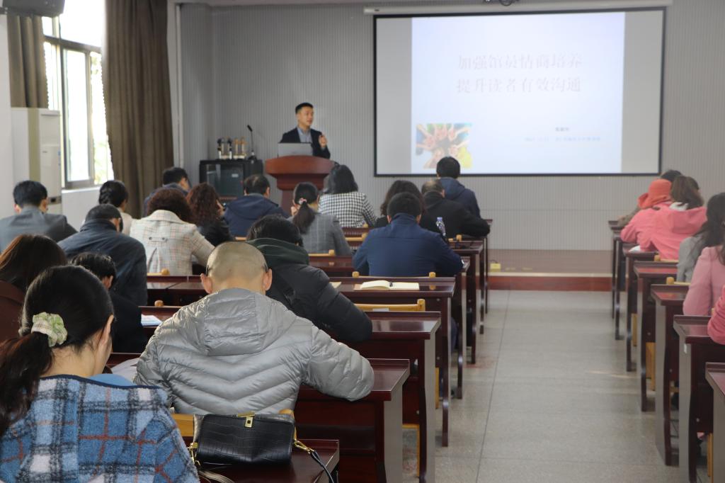 11月11日下午,应图书馆邀请,河海大学档案馆、校史馆副馆长,国家心理咨询师,张毅华副研究员在苍梧校区图书馆三楼多媒体报告厅为我校图书馆员做了“加强馆员情商培养提升读者有效沟通”讲座。图书馆全体馆员、江苏省财经学校部分老师参加了本次现场讲座。