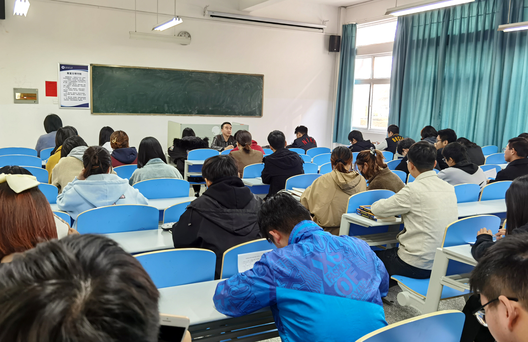 11月11日,应用技术学院期中教学检查学生座谈会在敦行楼111顺利召开,座谈会由副院长隋福利主持,教学秘书以及各班代表参加。