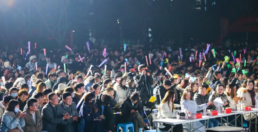 在大学生GTR劲舞团精彩的开场舞后,十五位选手依次上台演唱。他们热情满满,唱出一曲曲引人入胜的欢歌,有舒缓怡人的民谣、激情四射的rap、震撼人心的美声……舞台大屏的视频,与他们的歌声相呼应,让人目不转睛。现场的每个角落都充盈跃动的音符,点点荧光成为黑夜里的璀璨流星。尽管是在天气寒冷的室外舞台,也阻挡不住亲友团为选手们呐喊助威,观众们情绪高涨的欢呼声,将比赛气氛推向高潮。