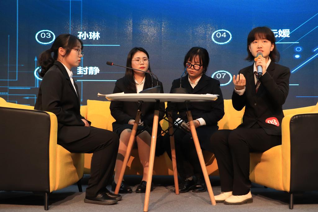 本次记者挑战赛邀请到了来自我校16名出类拔萃的学子作为受访嘉宾,其中包括空降兵、龙舟队队长、创业达人、科技发明爱好者等。选手们有的请嘉宾现场教学,有的和嘉宾聊过去的故事,他们之间的默契配合赢得评委和观众的阵阵掌声。新闻评述环节考察选手的逻辑性、洞察力与合作能力,选手赛前通过抽签分成四组,分别围绕新媒体时代移动支付生活产生的影响、丁真如何看待自己走红、大学生是否需要增负以及“洋节”进校园四个热点话题展开讨论,在限定的时间内,有观点的碰撞、有选手间的互动,现场气氛十分热烈。