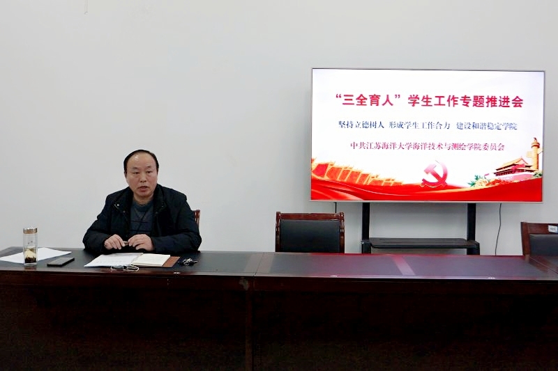12月9日下午,海洋技术与测绘学院召开全体教职工大会,学院党委书记冯凤麟就“落实立德树人根本任务,推进‘三全育人’,进一步做好学生教育管理服务工作”做了专题学习和安排。学院党政领导和全体教职工参加会议。