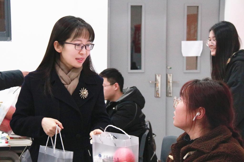 在文思楼,原本静悄悄的考研教室因为老师们的到来,瞬间热闹起来,复习一天已经有些疲惫的同学们拿着满含情谊的慰问品,俏皮地表示:“有学校加持助力,我还能学!”教室里空调吹出来的暖风与心间的暖意一同悄悄流淌。