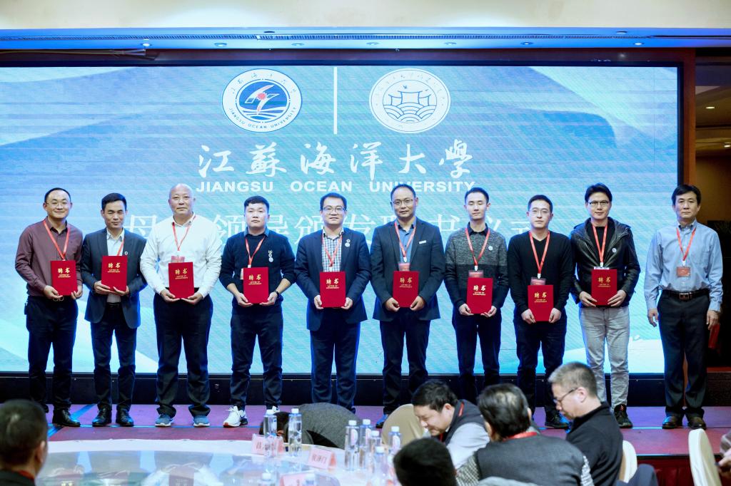 在欢快的进行曲中,金芙蓉向林文胜颁发了会长聘书,并向福建校友会授予江苏海洋大学福建校友会会牌和会旗。
