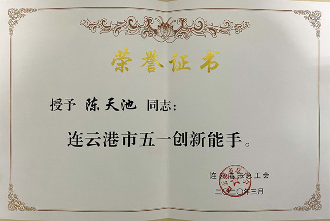 近日,我校计算机工程学院学生陈天池获得“连云港市五一创新能手”称号。