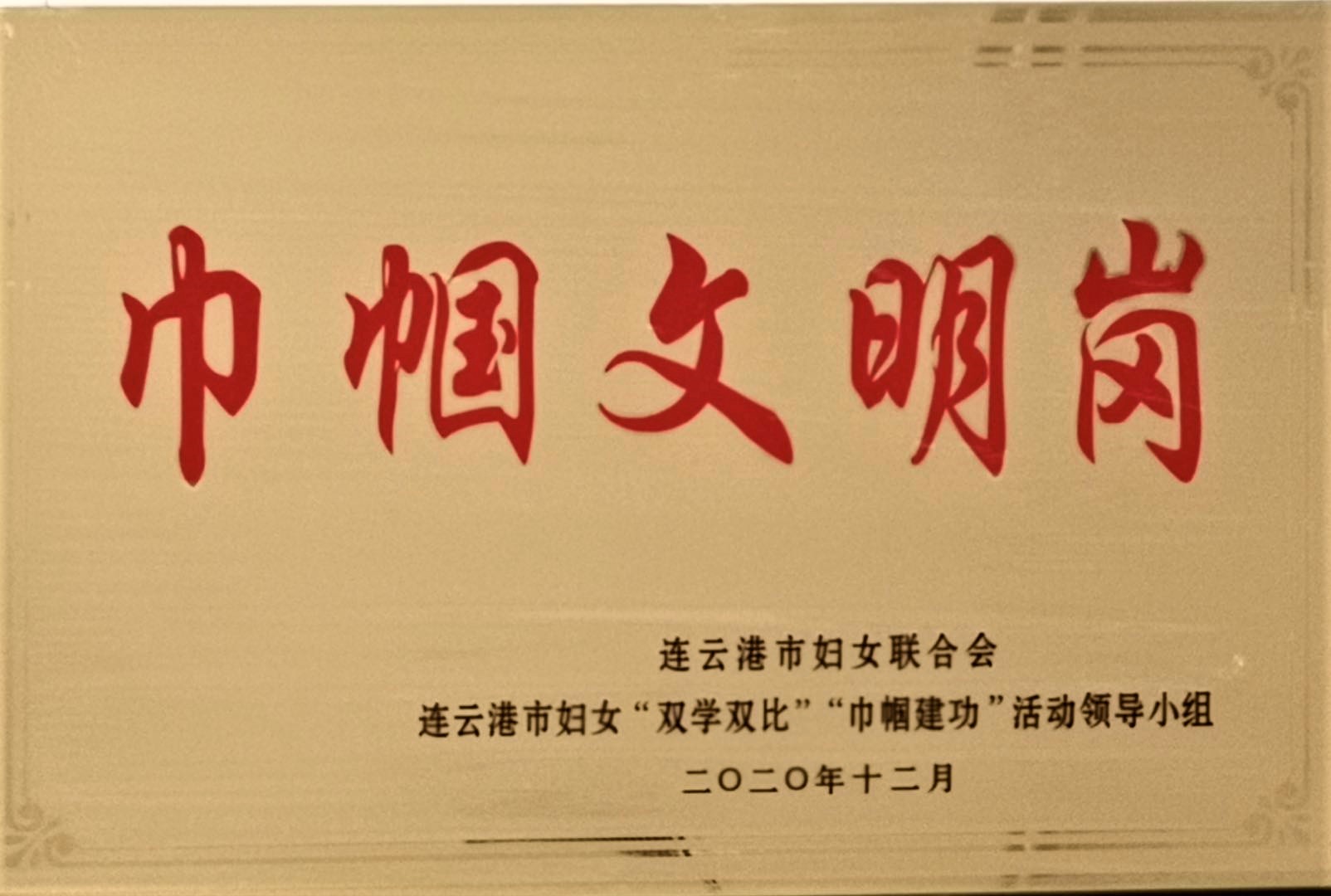近日,根据连云港市妇联文件《关于命名2019年度连云港市城乡妇女岗位建功先进集体(个人)的决定》(连妇协〔2020〕8号),由我校工会申报的药学院制药工程系被授予连云港市“巾帼文明岗”荣誉称号。