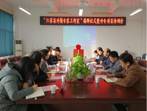 会上,范亚松和缪泉明共同为我校获批的江苏省外国专家工作室揭牌。会后,杜强对外专项目申报进行了政策解读和辅导。