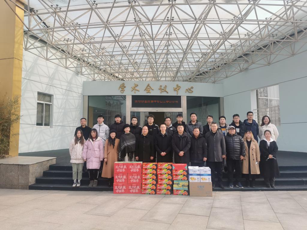 座谈会后,与会人员为河北籍留校学生发放春节慰问品并合影留念。