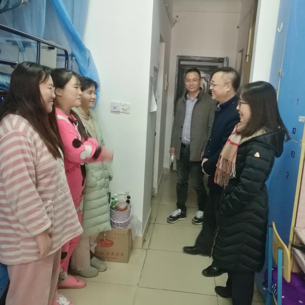 3月2日上午,副校长金芙蓉、严云洋在学生处、教务处、教学质量管理处等相关人员的陪同下,深入学生宿舍看望新学期返校学生。