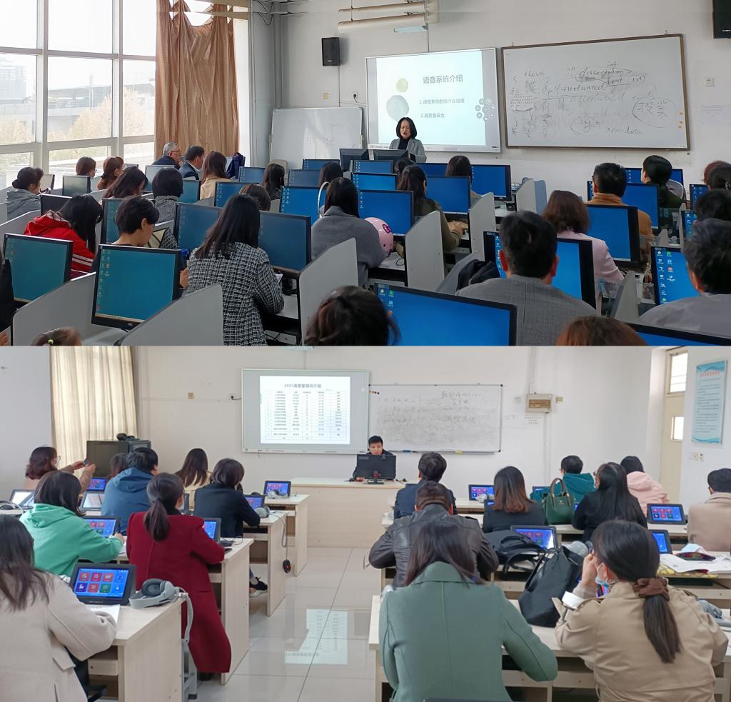 语音教室是学校外语教学中不可缺少的现代化教学设施,主要面对外语专业及其它专业学习英语、学习语言的学生,是专为学生进行口语训练和听力训练的教学环境,语音教室中设备较多,教学系统软件操作较为复杂。培训会上,顾海溶老师、晁炜老师详细介绍了语音教室内各种组成设备的功能和使用规范,系统讲解了语音教室教学系统的用法和操作技巧,重点为上课教师讲述了教室智慧大屏在外语教学过程中能使用到的各种功能。培训活动中,参加培训的老师们表现出了浓厚的学习兴趣,培训互动积极,都表现出希望通过培训改进课堂教学的积极愿望。