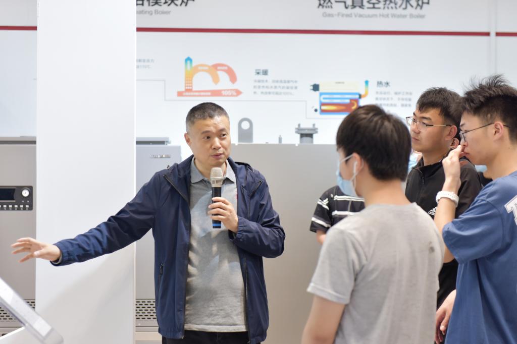 产品展厅中琳琅满目的高科技产品让大家大开眼界,不同专业的学生在各类产品及场景中关联到各自所学的专业知识点,现场与工程师讨论。