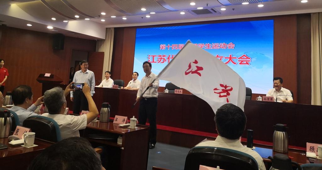 6月17日上午,第十四届全国学生运动会江苏代表团成立大会在省教育厅406会议室隆重召开。副省长、江苏代表团名誉团长马欣到会并为代表团授旗,省教育厅、省体育局、团省委有关领导,组队高校体育部(院、系)负责人出席会议。体育学院院长赵宏及帆船队全体教练员、运动员参加了会议。