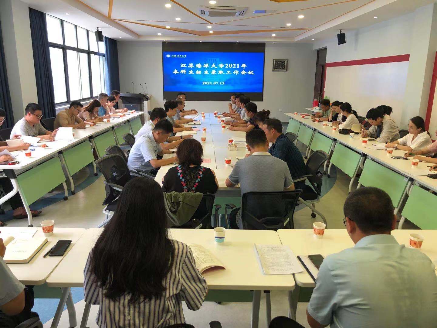 招生与就业处处长马恒通传达了江苏省教育考试院关于做好2021年普通高校招生录取工作的通知文件精神及全省本科招生录取工作会议精神,并就我校2021年本科生网上录取工作方案进行了解读和说明。