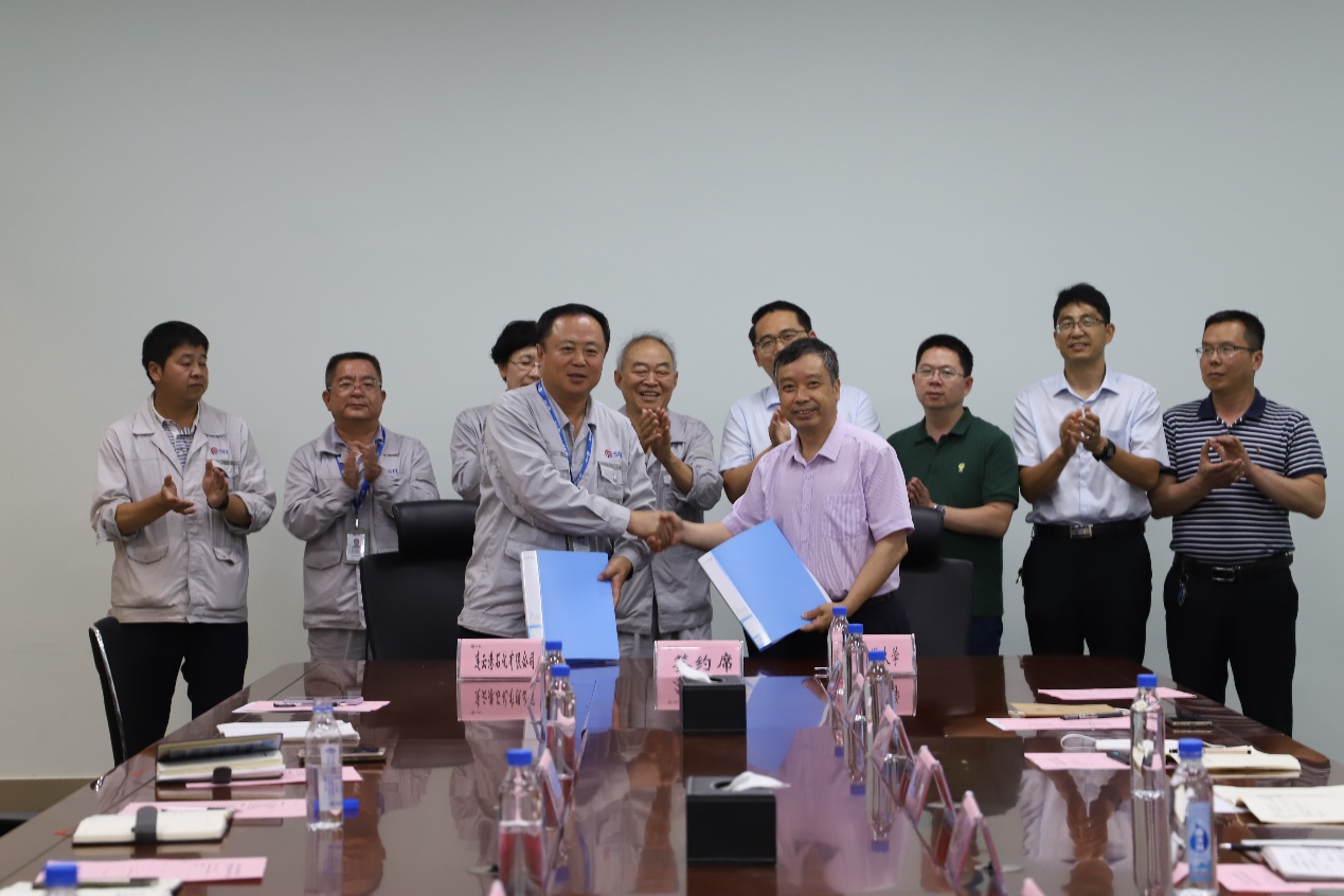 许兴友与朱晓东代表双方签订了江苏海洋大学-连云港石化有限公司合作协议。本次访问交流为双方实现更深层次、更宽领域、更高水平上的合作共赢奠定了坚实基础。