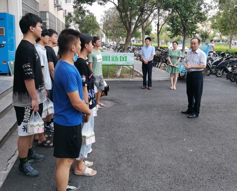 暑热三伏天,假期留校备战考研学生的学习生活情况始终牵动着海洋技术与测绘学院领导和老师的心。8月4日下午,学院党委书记冯凤麟、党委副书记田扬启、辅导员周琦一同看望留校复习考研的2018级学生,为他们送去慰问品。