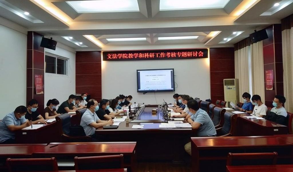 8月20日下午,文法学院在文渊楼216会议室召开教学与科研工作考核专题会议,院长吴明忠主持会议,院领导班子成员、系正副主任、系党支部书记、教师代表以及教学科研办和党政办负责人参加会议。
