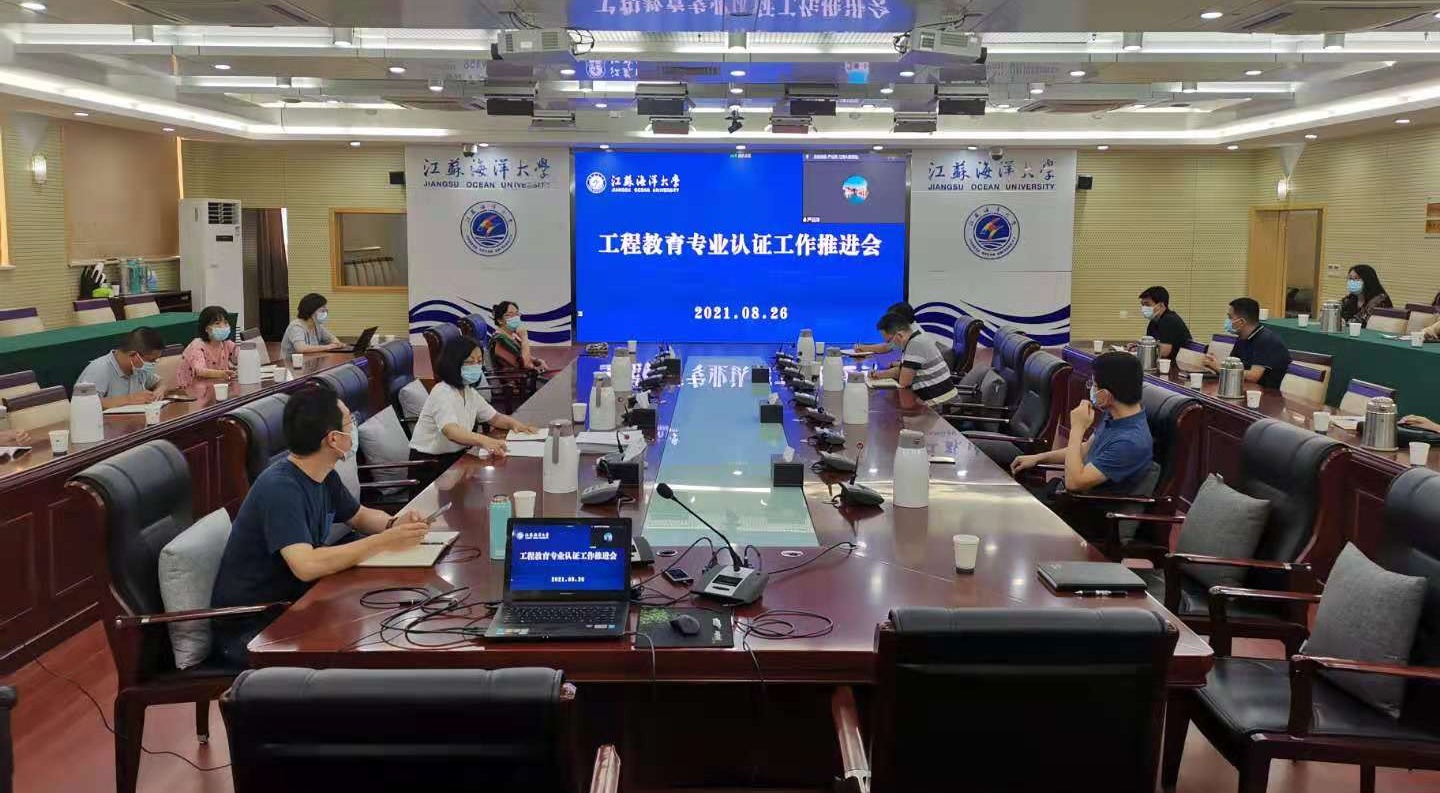 工程教育专业认证是我校促进专业建设,提高人才培养质量的有力举措。根据《江苏海洋大学2021年党政工作要点》精神,各相关学院对专业认证高度重视,2021年我校有7个学院10个专业启动了新一轮工程教育专业认证工作。8月26下午,工程教育专业认证工作推进会在会议中心东海厅如期召开,会议采用线下和线上结合的方式进行。相关学院院长、教学院长、专业负责人及骨干教师参加会议。会议由副校长严云洋主持。