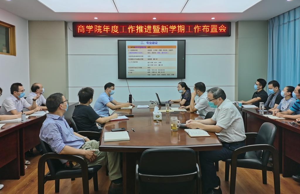 8月29日下午,商学院在文渊楼355会议室召开年度工作推进暨新学期工作布置会。院领导班子成员,系正副主任、教工党支部书记、实验中心主任和党政办主任参加会议,会议由商学院党委书记万金店主持。