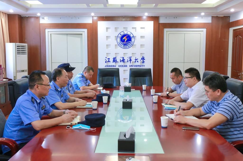 9月9日上午,连云港市高新区公安分局局长高剑波、副局长徐强等一行应邀来我校指导开学期间安全稳定工作。副校长朱国军在行政楼二楼会议室会见了高剑波一行。
