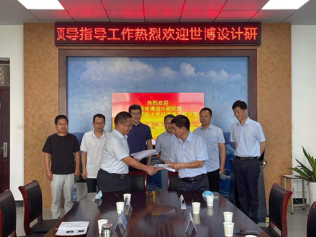 9月10日上午,土木与港海工程学院与江苏世博设计研究院有限公司在土木楼三楼会议室举行技术研发合作洽谈和签约仪式。江苏世博设计研究院有限公司院长郭世平和三位副院长田军、夏恒祥、周海明及土木与港海工程学院相关负责人参加了签约仪式。