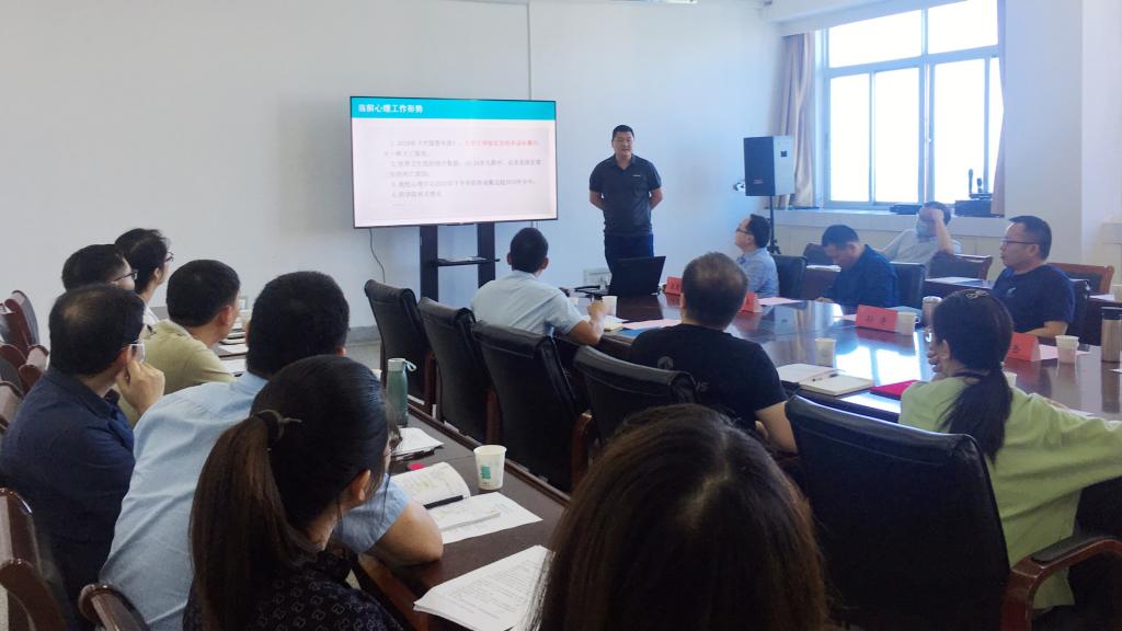 为加强我院2021级新生班级的管理和教育工作,不断提高班主任解决学生心理危机的能力,根据我院学生工作需要,9月8日下午,药学院2021级新生班主任聘任仪式暨新学期班主任培训会在主楼1106会议室顺利召开。会议由药学院党总支副书记李海南主持,药学院党政领导班子全体成员以及学院全体班主任、辅导员老师参加了会议。校学生工作处副处长张岳应邀为全院班主任老师开展心理工作培训。