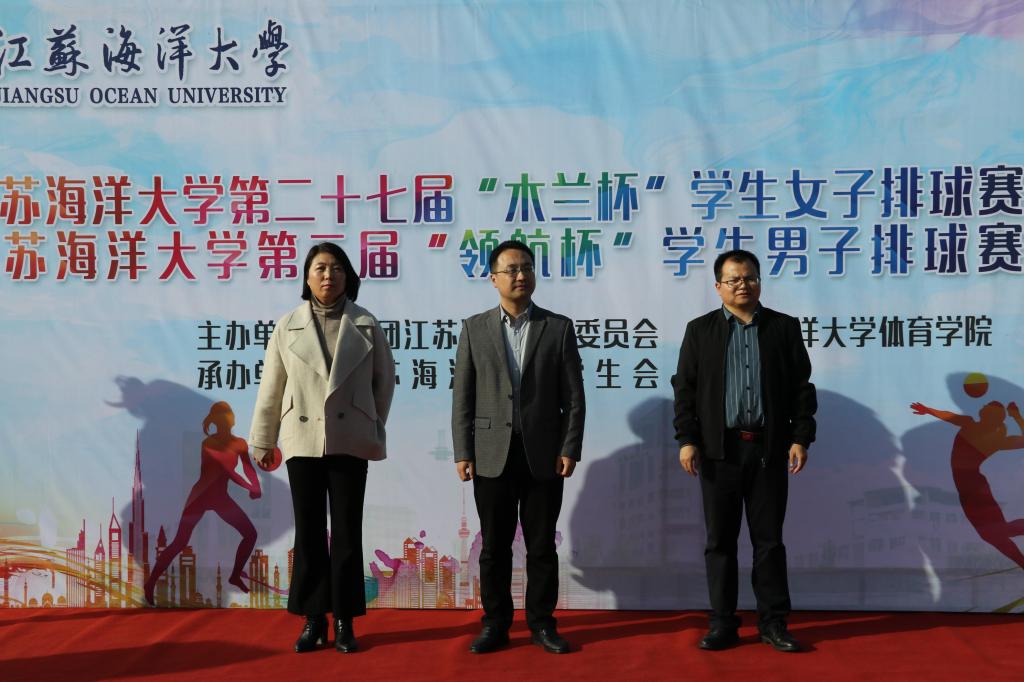 在开幕式上,校团委书记黄吉庆做比赛动员讲话,他回顾了“木兰杯”学生女子排球赛的历史和“领航杯”去年的赛况,号召广大同学树立强身健体的意识、 养成良好运动习惯。裁判员和运动员代表分别宣誓,表示要服从组委会安排、认真对待每场比赛,展示江海大学子顽强拼搏、团结协作的青春风貌。体育学院党总支副书记孙萍为本次排球比赛开赛发球。
