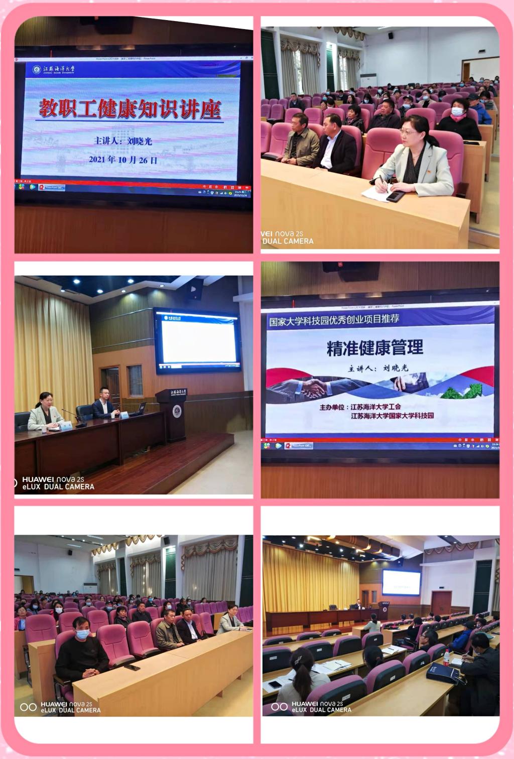 讲座邀请到连云港市厅级干部首席保健专家、市保健协会会长刘晓光进行授课。刘会长围绕常见慢病的预防和保健,用图文并茂的PPT,生动典型的案例和通俗易懂的语言,从基本营养知识、合理饮食结构、日常生活常识以及饮食搭配要点等方面进行了详细的介绍。讲座后现场提问环节,刘晓光耐心为教职工答疑解惑,并给出合理建议。
