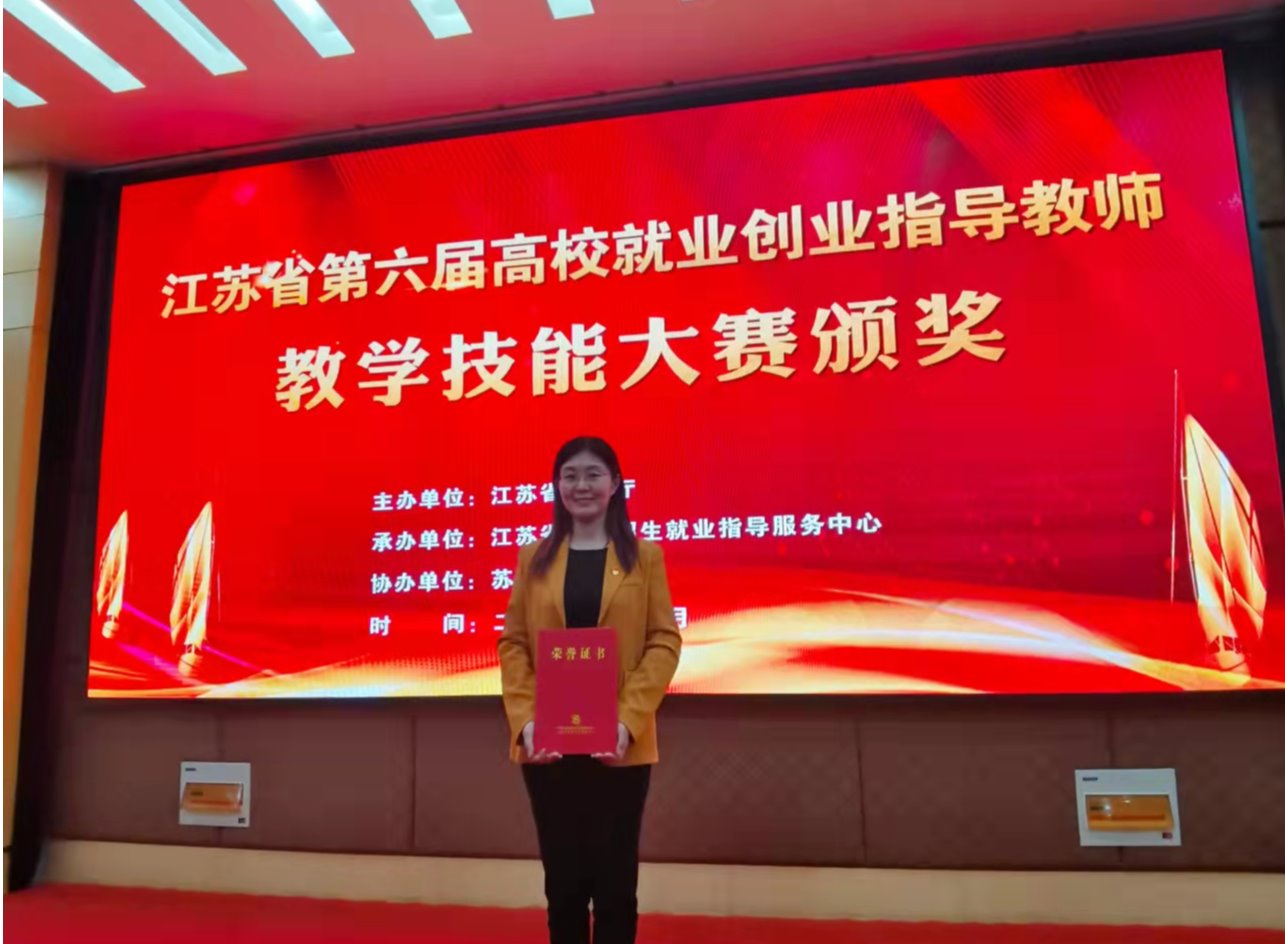 11月3日,江苏省第六届高校就业创业指导教师教学技能大赛决赛在苏州科技大学举行。经过激烈的角逐,我校文法学院蒋莹莹老师以全省第5名的成绩获得微课赛道三等奖。